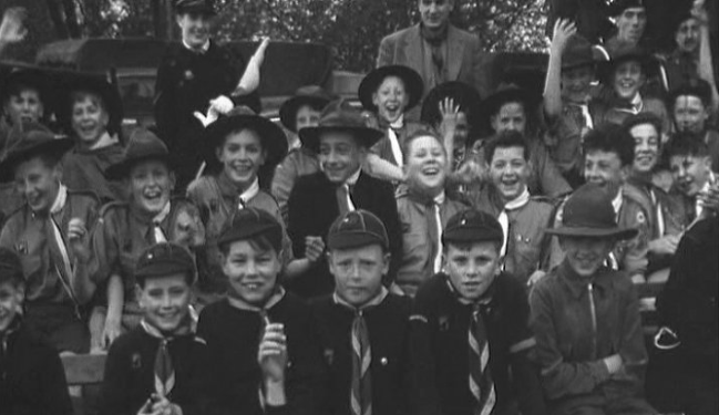 In 1957 The Queen and Prince Phillip visited Worcester on their grand tour of the UK.  The photo above (taken from Pathe News reel footage) shows Claines Boy Scouts (behind the Wolf Cubs) lining the route in celebration.