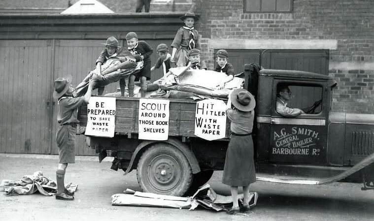 The Boy Scouts helped the war effort again in 1939 and the photo above shows Worcester Boy Scouts and Claines Wolf Cubs (spot those neckers again) collecting waste paper. I’m not sure what success they would have had though if Hitler had invaded if all they had to hit him with was waste paper!