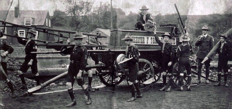 During the first world war the Boy Scouts were expected to perform a civic duty to help civilians in a time of need. The photo above shows Worcester “F” Troop demonstrating their firefighting skills by the canal.